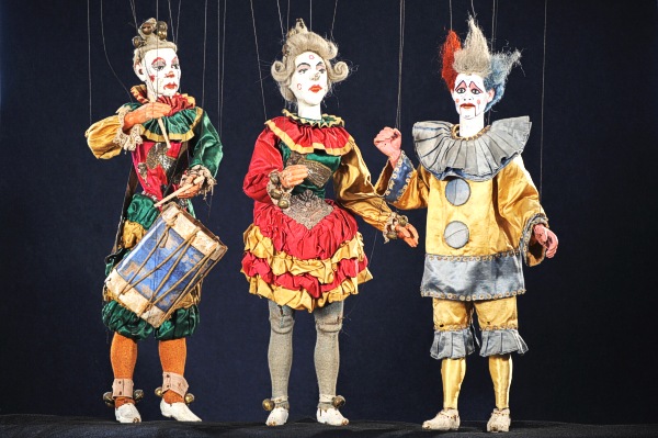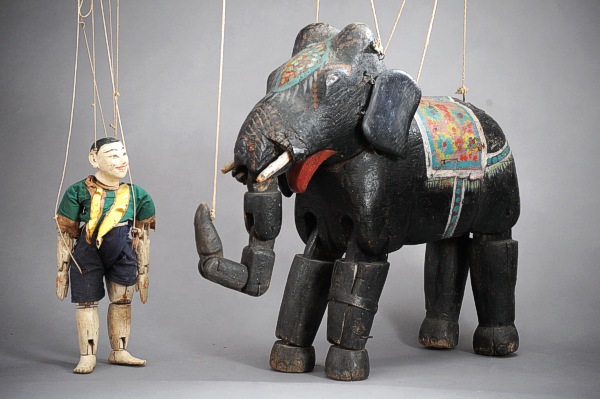 Schattenspielfiguren, Gliederpuppen, Bauchrednerpuppen und mechanische